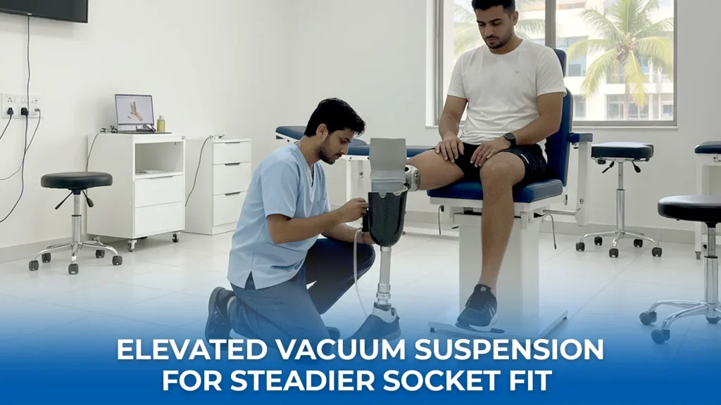 Vacuum suspension pulls the liner and socket together with a sealed system. So the limb stays stable through long hours. Many users report less pistoning and fewer pressure spikes. Vacuum can help control limb volume changes during the day. It suits users who face volume swings during heat and travel. However, you must keep seals clean and check tubing often.